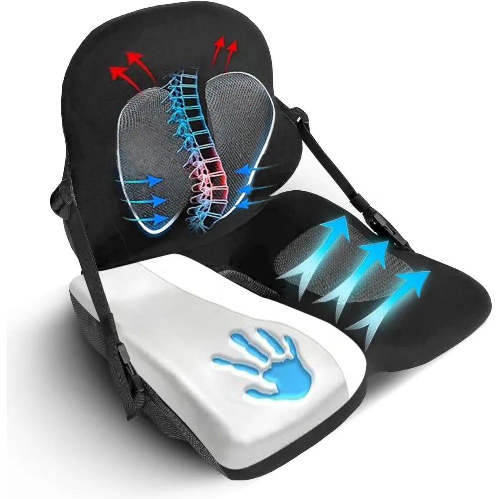 Transform your workspace with an ergonomic dual-piece lumbar and seat cushion that guides your spine into natural alignment and lasting comfort.