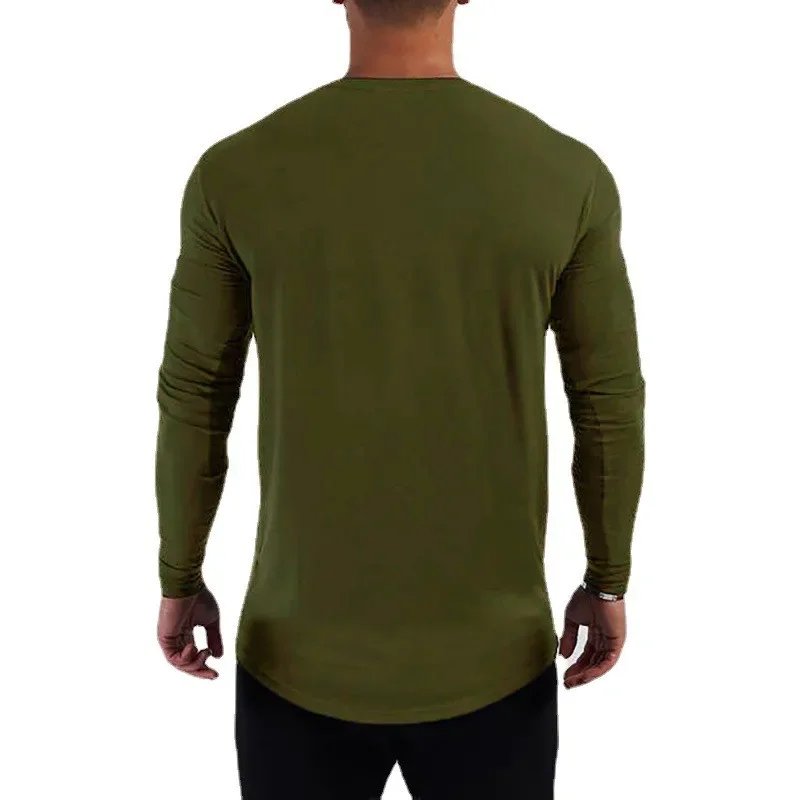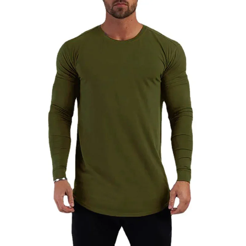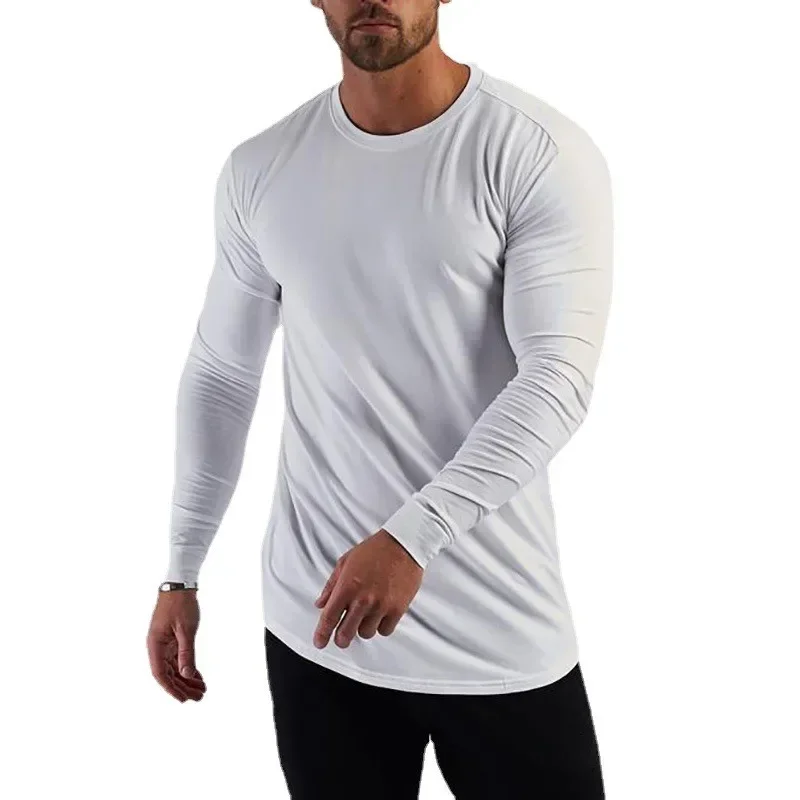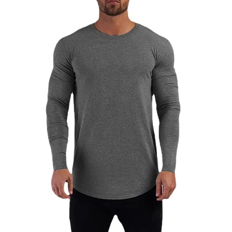 Plain Cotton Breathable Long Sleeve Clothing Gym Fitness Bodybuilding Sport T-shirts Mens Workout Casual Slim Fit Autumn Shirts