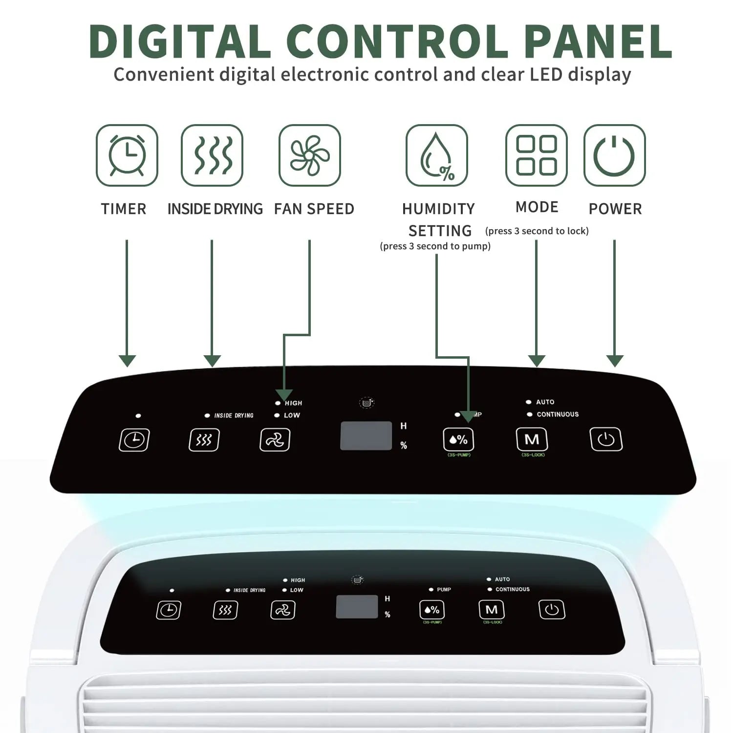 - High capacity and precise control: Removes up to 150 pints per day and lets you tune humidity from 30% to 80% in 5% steps, keeping a comfortable 45–55% air.